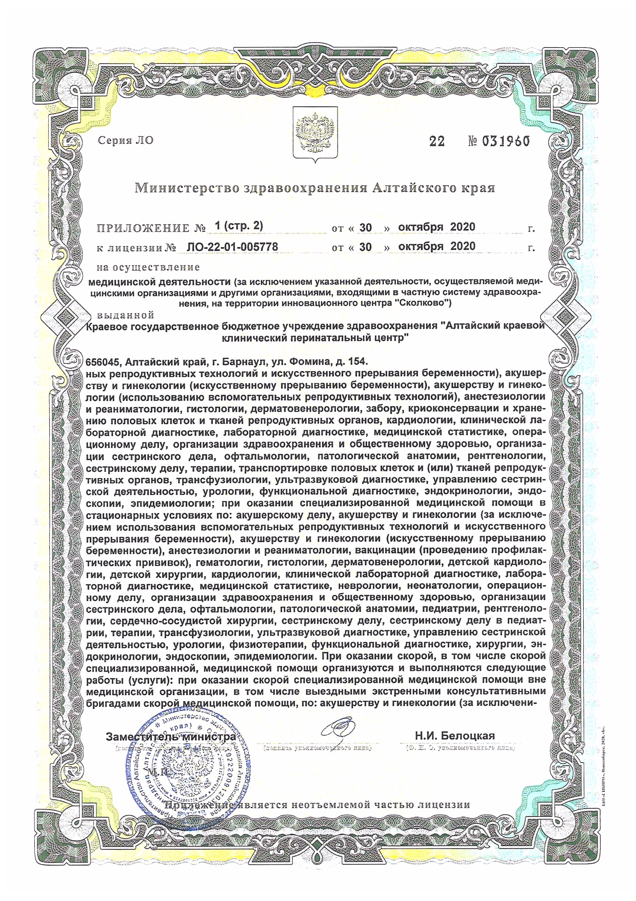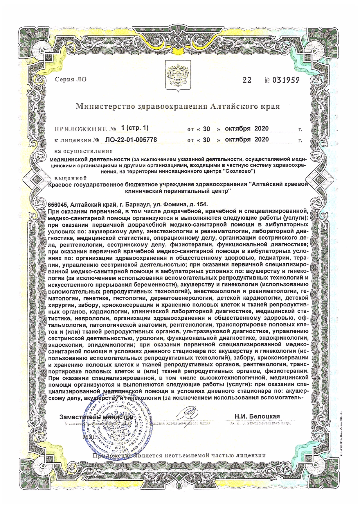 оказание квалифицированной помощи беременным женщинам, отнесенным к группам повышенного риска возникновения перинатальной патологии, ведение родовой деятельности. Использование высоких технологий неонатологической помощи центра позволяет выхаживать недоношенных детей с экстремально низкой массой тела от 500 граммов.